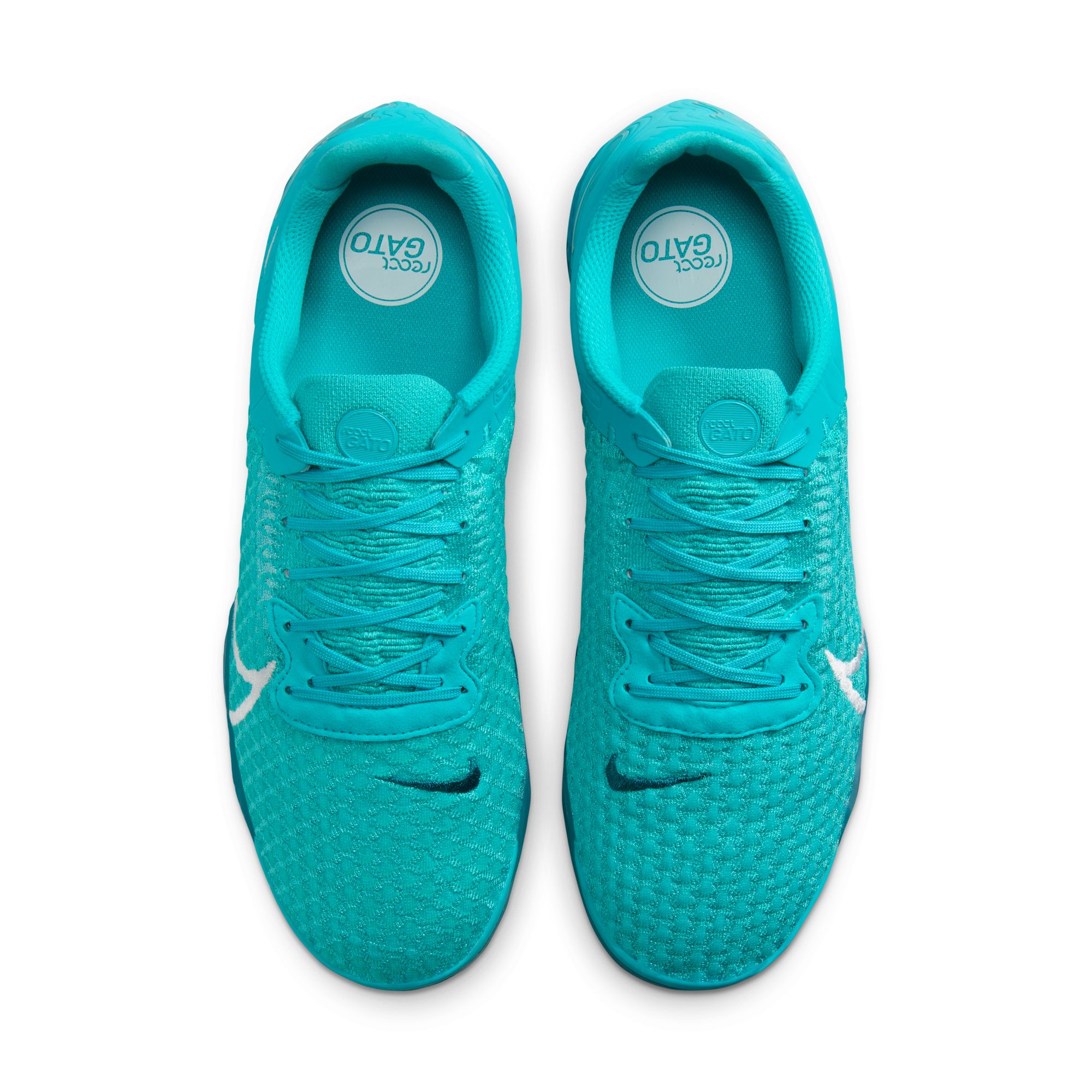 Der Nike React Gato ist ein speziell für Hallen- und Hartplätze entwickelter Herren-Indoorschuh, der eine ideale Kombination aus Kontrolle und Komfort bietet. Das Obermaterial besteht aus Flyknit, welches mit einem strapazierfähigen Material verschmolzen ist, um bei hohen Geschwindigkeiten eine präzise Ballkontrolle zu ermöglichen. Besonders hervorzuheben ist die Nike React-Dämpfung, die für eine reaktionsfreudige Energierückgabe sorgt und die Bewegungsfreiheit bei schnellen Richtungswechseln unterstützt. Flexible Gummipods unter der Sohle (Nike Touch 360) verbessern das Ballgefühl und die taktile Reaktionsfähigkeit, indem sie leicht unter die Dämpfung in der Sohle eindringen. Ein verstärktes Band im Zehenbereich erhöht die Strapazierfähigkeit zusätzlich. Die symmetrische Schnürung garantiert optimalen Halt und eine einzigartige Passform. Der Schuh ist atmungsaktiv, komfortabel und auf Langlebigkeit ausgelegt. Die IC-Laufsohle aus Gummi ist optimal für Indoor- und Hallenfelder geeignet, wodurch der Schuh Spielern auf allen Positionen ein sicheres Auftreten ermöglicht. Dieser Hallenfußballschuh von Nike, einem weltweit führenden Hersteller, unterstützt Dich beim schnellen und dynamischen Court-Spiel mit exzellentem Grip und hoher Strapazierfähigkeit.