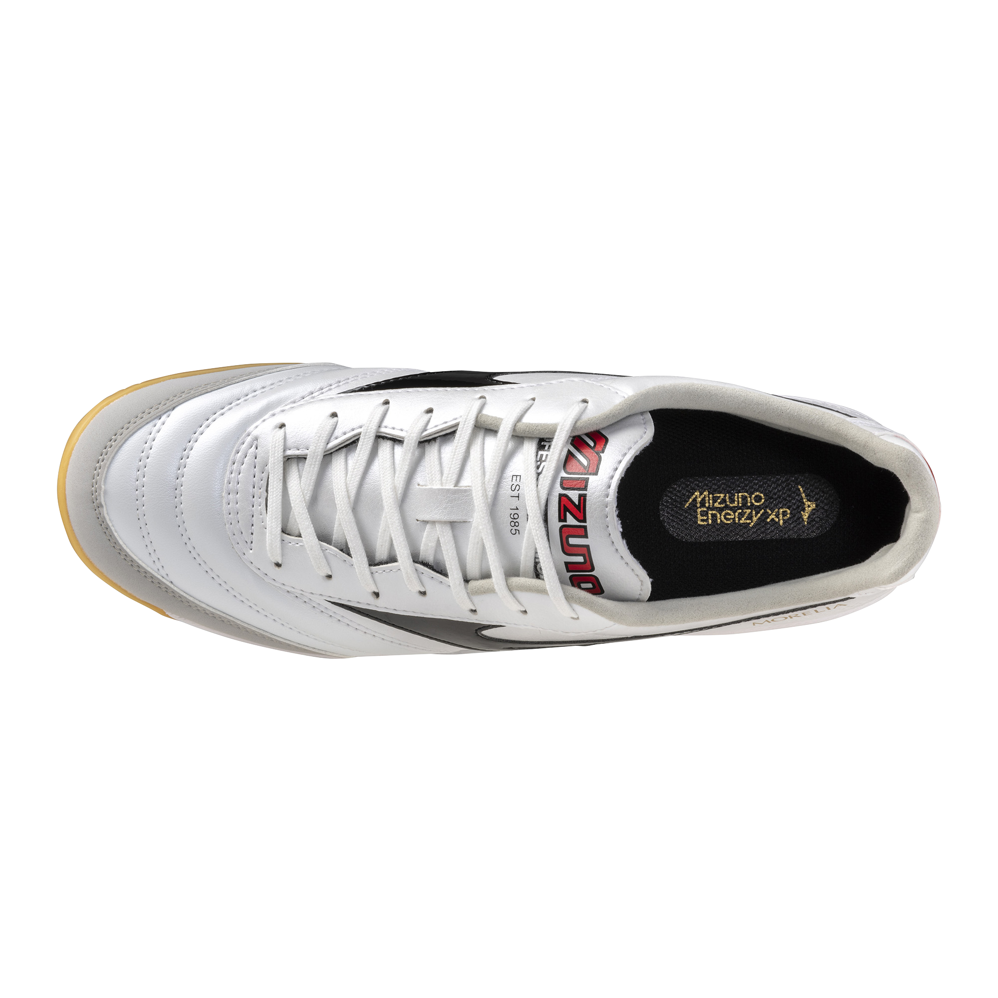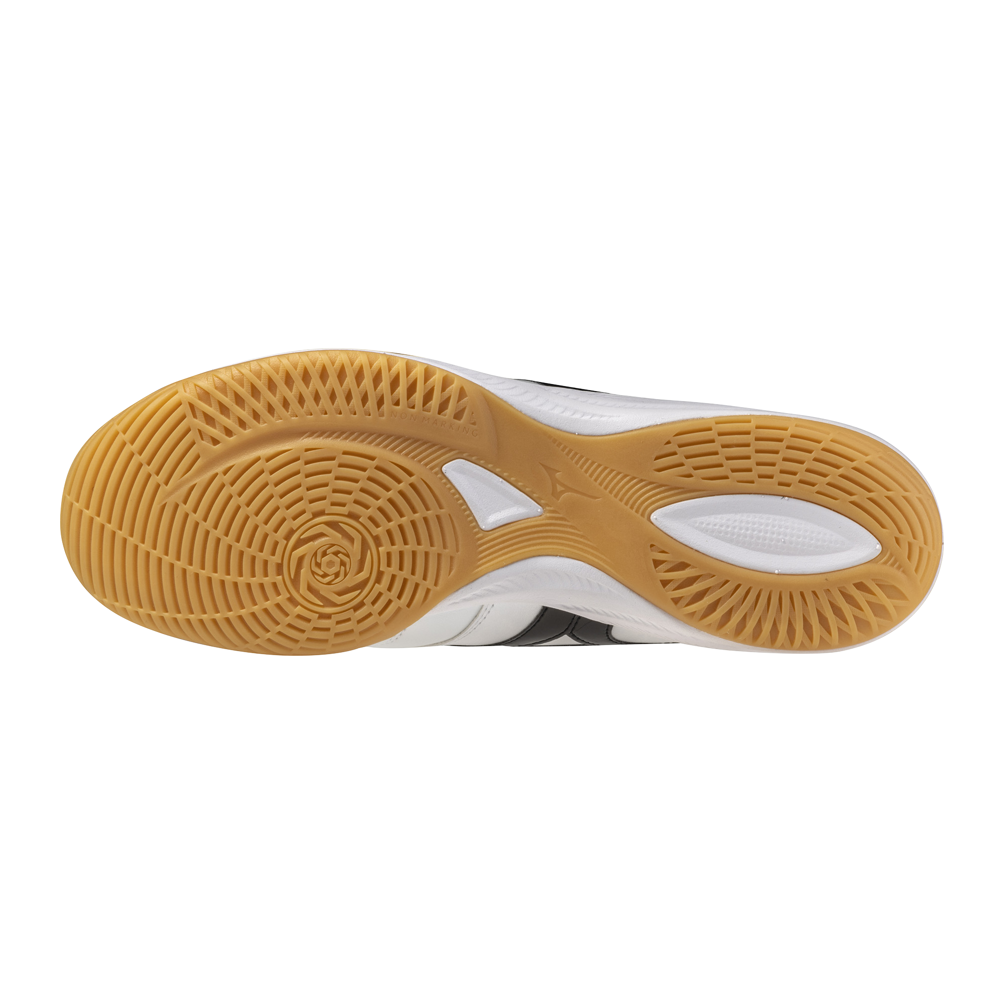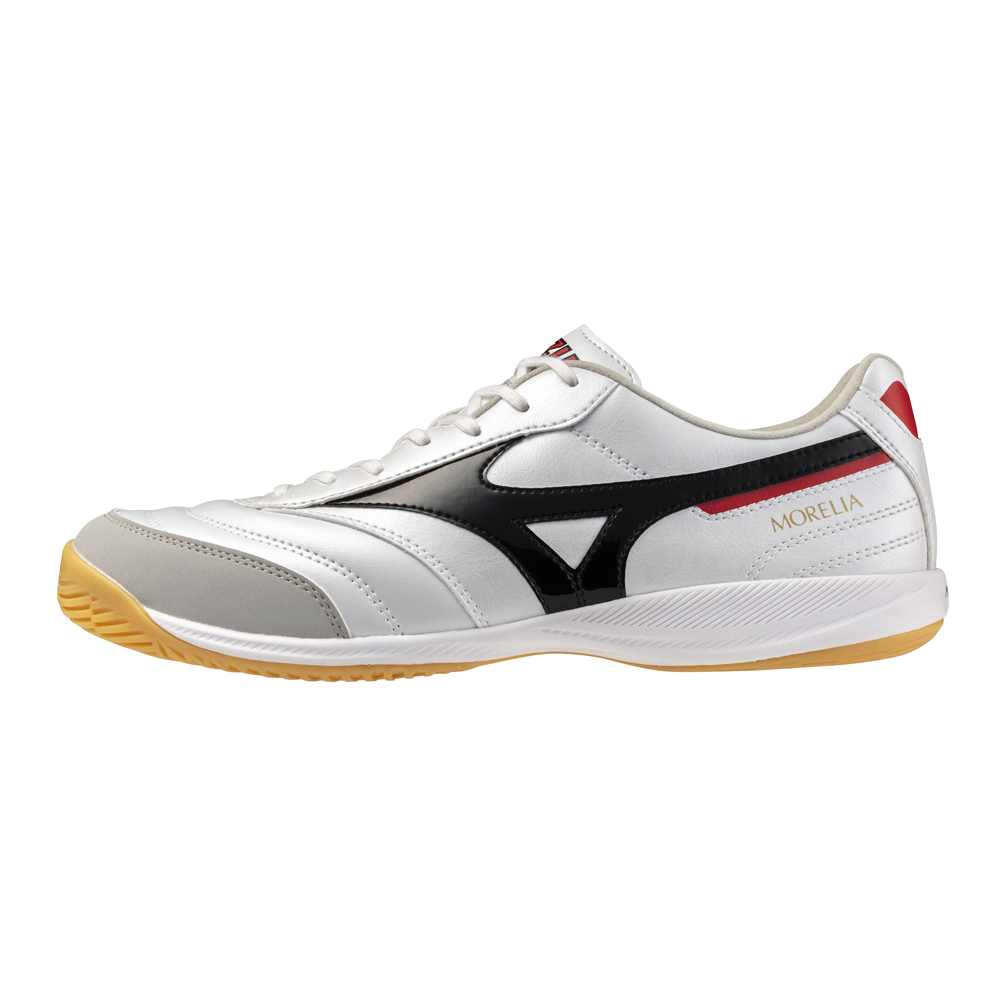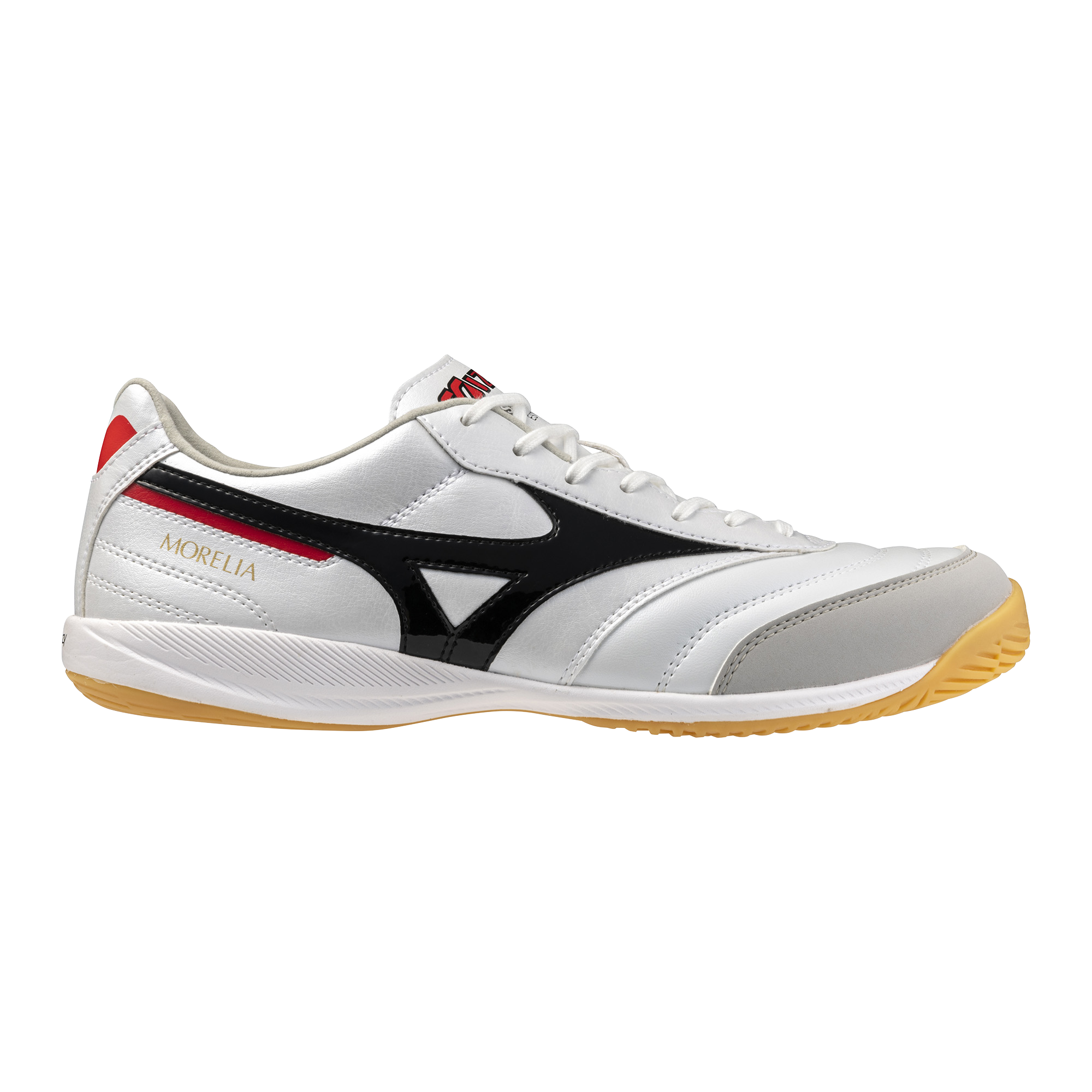 Der Mizuno Morelia Sala Pro In ist ein hochwertiger Hallenfußballschuh, der das typische Barfußgefühl und die leichte Flexibilität von Mizuno bietet. Das neue Obermaterial besteht aus Mikrofaser-Kunstleder, welches Komfort und Haltbarkeit optimal kombiniert. Die durchgehende Zwischensohle sorgt für eine verbesserte Dämpfung, ohne das Barfußgefühl zu beeinträchtigen. Die Außensohle ist speziell für hohen Grip und Abriebfestigkeit entwickelt und bietet so gute Performance auf Hallenböden. Der Schuh ist leicht und flexibel, ideal für Fußballspieler, die ein Modell mit einer passgenauen Morelia II Passform suchen. Die moderne Technologie U4ic trägt zusätzlich zur Dämpfung und zum Komfort bei. Die Farbkombination aus Weiß mit schwarzen Akzenten vermittelt einen klassischen und sportlichen Look.