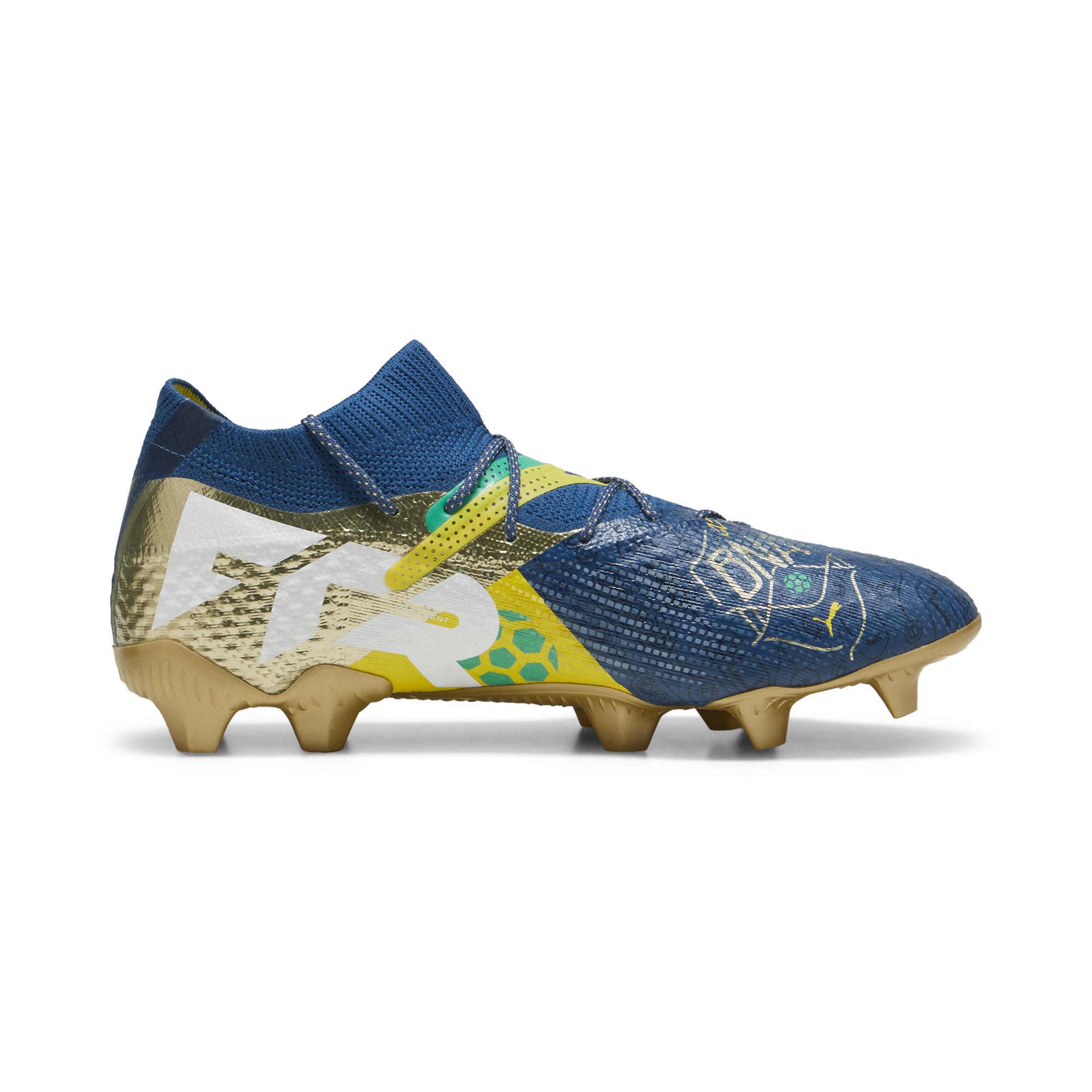 Der PUMA Future 7 Ultimate BNA FG AG Fußballschuh ehrt brasilianische Spielmacher und ist inspiriert von der Fußballnation Brasilien. Er verfügt über ein innovatives Obermaterial, das PWRPRINT und PWRTAPE mit extra dehnbarem Strick und weichem Dual-Mesh kombiniert. Diese Materialien sorgen für eine adaptive und eng anliegende Passform, die Bewegungsfreiheit und Halt bietet. Das Dynamic Motion System in der superleichten Außensohle ermöglicht durch eine fortschrittliche Stollenkonfiguration verbesserte multidirektionale Traktion und Agilität, ideal für schnelle Richtungswechsel und Tempowechsel auf dem Spielfeld. Die Innensohle ist mit NanoGrip-Technologie ausgestattet, die ein Verrutschen des Fußes im Schuh verhindert. Mikroperforierte Fersenpolsterung sorgt für sicheren Halt und Komfort. Die mittelhohe Slip-On-Konstruktion erlaubt es, den Schuh mit oder ohne Schnürsenkel zu tragen. Die Passform ist regulär bis breit, und der Schuh ist sowohl für festen Naturrasen als auch für Kunstrasen (4G) geeignet. Zudem besteht das Obermaterial zu mindestens 20 % aus recycelten Materialien, was den Schuh nachhaltiger macht. Das Modell symbolisiert Kreativität und Flexibilität auf dem Spielfeld und unterstützt den Spieler bei bestmöglicher Performance.