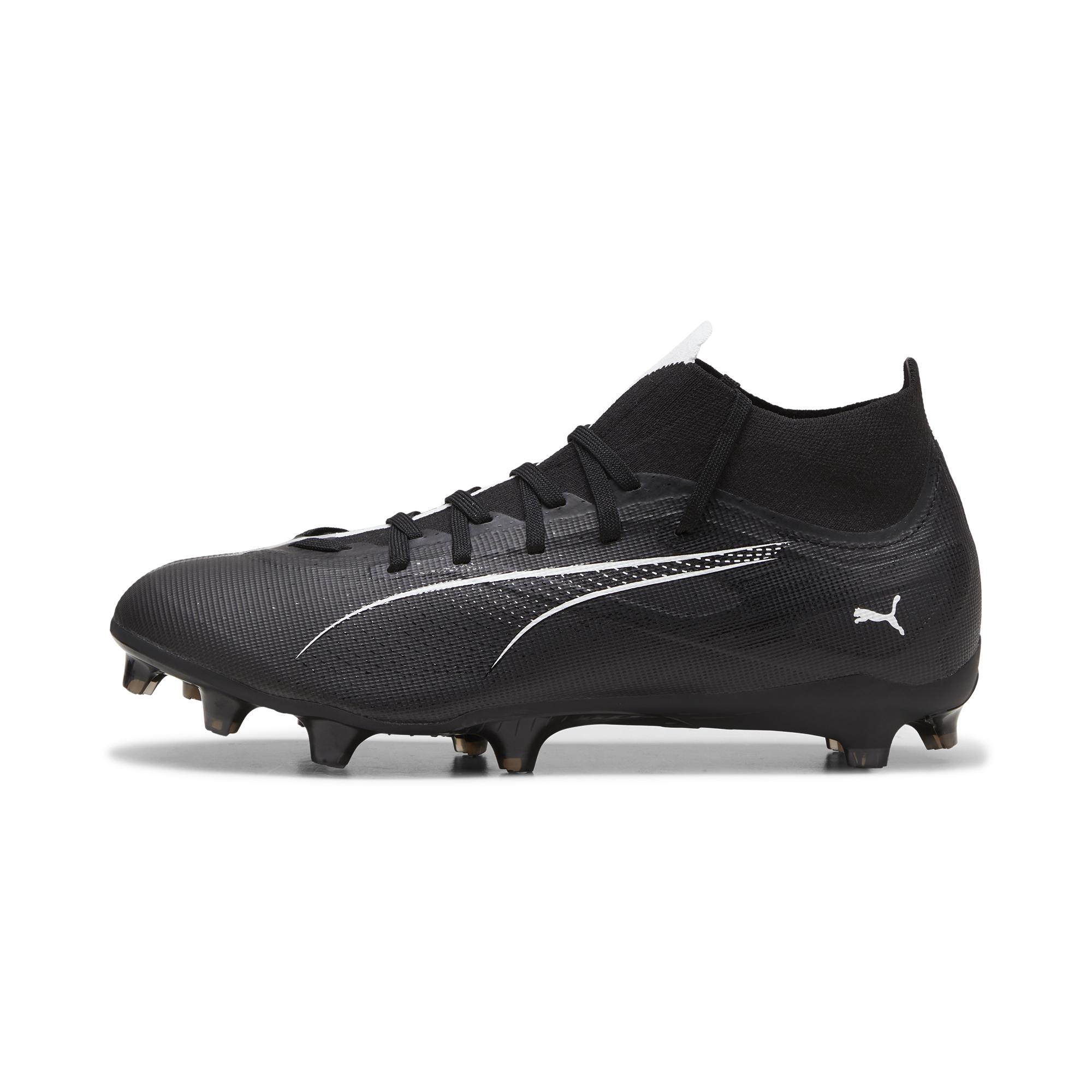 Der PUMA ULTRA 5 MATCH FG AG ist ein moderner Fußballschuh, der auf 23 Jahren PUMA Motorsport-Erbe basiert und speziell für maximale Beschleunigung und optimale Traktion auf festem Boden sowie Kunstrasen entwickelt wurde. Kernstück des Schuhs ist die neuartige SPEEDSYSTEM-Außensohle mit dem FastTrax-Stollendesign, die ein hochleistungsfähiges Fasermaterial mit einem revolutionären Stollensystem kombiniert. Dieses sorgt für einen hohen Energierückgewinnungsgrad, was eine schnellere Beschleunigung ermöglicht. Drei abgerundete seitliche Stollen gewährleisten einen reibungslosen Wechsel zwischen festem Boden und Kunstrasen, ohne die Traktion zu beeinträchtigen. Das Obermaterial besteht aus leichtem Mesh mit einem stabilisierenden Stützrahmen und einer Grip Control Skin für bessere Ballkontrolle. Außerdem bestehen mindestens 20 % des Obermaterials aus recycelten Materialien, was einen nachhaltigen Aspekt einbringt. Der Schuh ist für Fußballspieler gedacht, die auf unterschiedlichen Untergründen voller Leistung spielen wollen und dabei schnelle Richtungswechsel benötigen. Der Schuh ist schwarz mit einem dynamischen Design und bietet eine ideale Kombination aus Stabilität, Beschleunigung und Traktion.